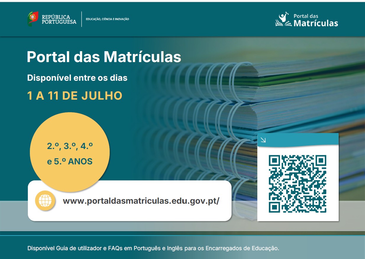 A renovação de matrícula para o 5.º ano de escolaridade não é automática. Deve ser realizada pelo Encarregado de Educação no portal das Matrículas (https://portaldasmatriculas.edu.gov.pt) ou na secretaria do Agrupamento (deverá fazer-se acompanhar do cartão de cidadão do Encarregado de Educação e do respetivo educando e outros documentos necessários para a respetiva matrícula).