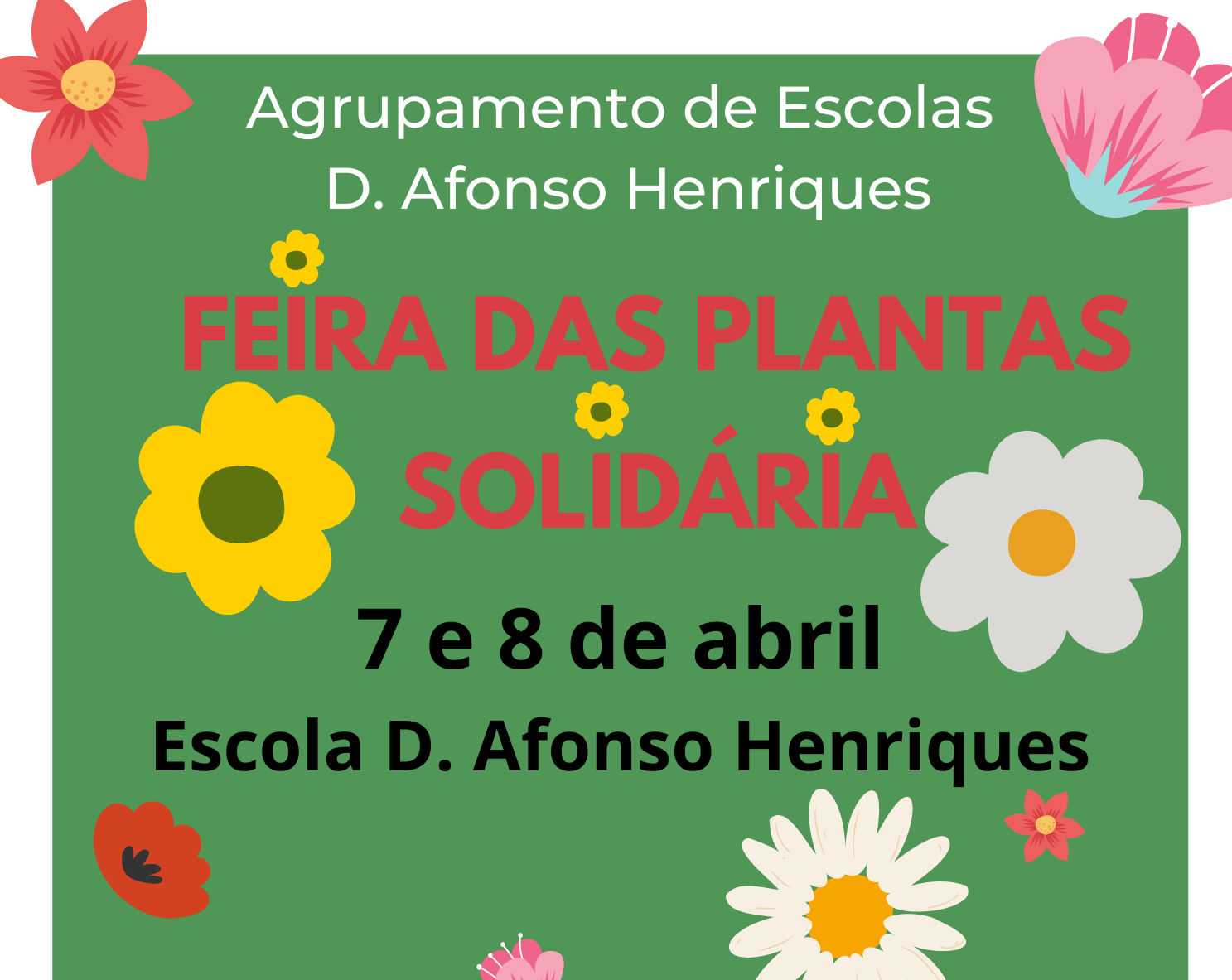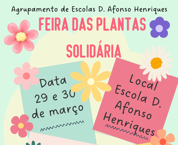 Gostaríamos de convidar a comunidade escolar a visitar e a participar na V Feira das Plantas Solidária que se irá realizar nos dias 7 e 8 de abril, na Escola D. Afonso Henriques.